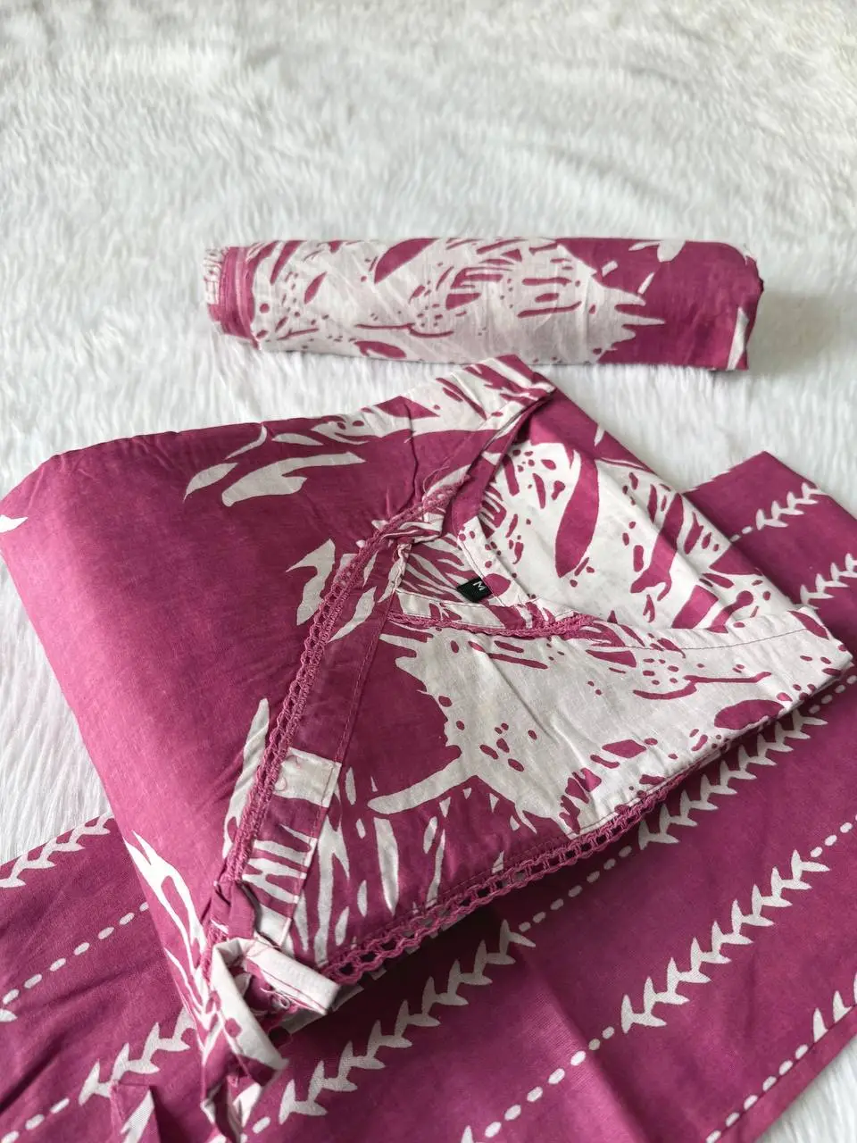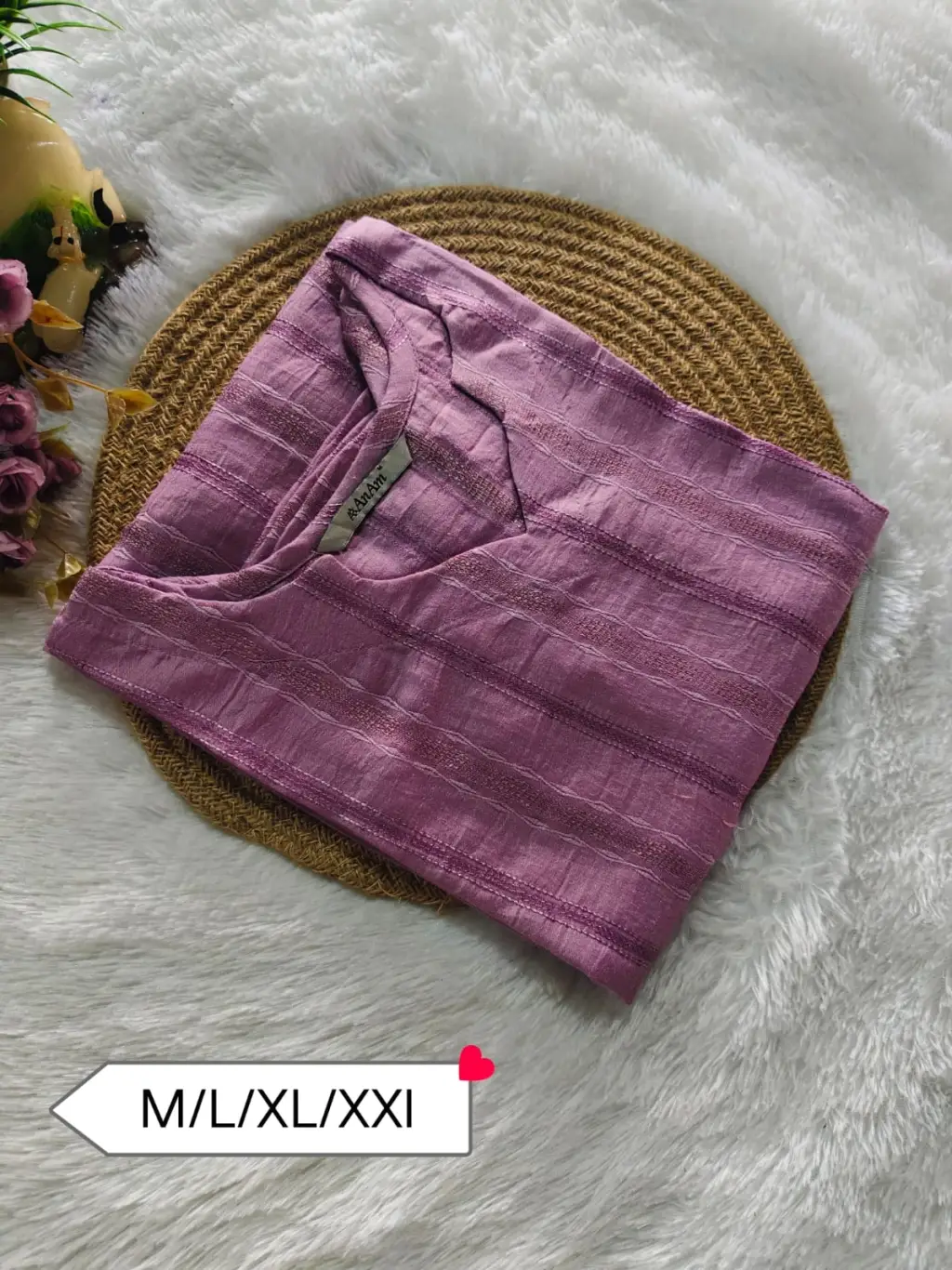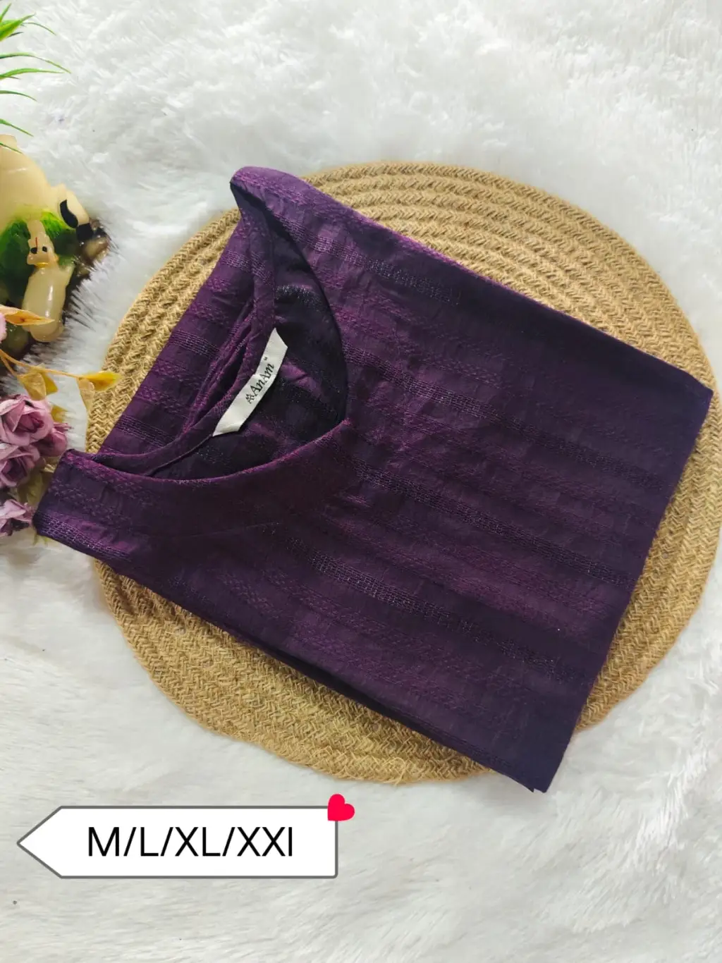 This cotton set is amazing. The fabric is soft, comfortable, and breathable. It fits well, looks great, and stays nice even after washing. I love it