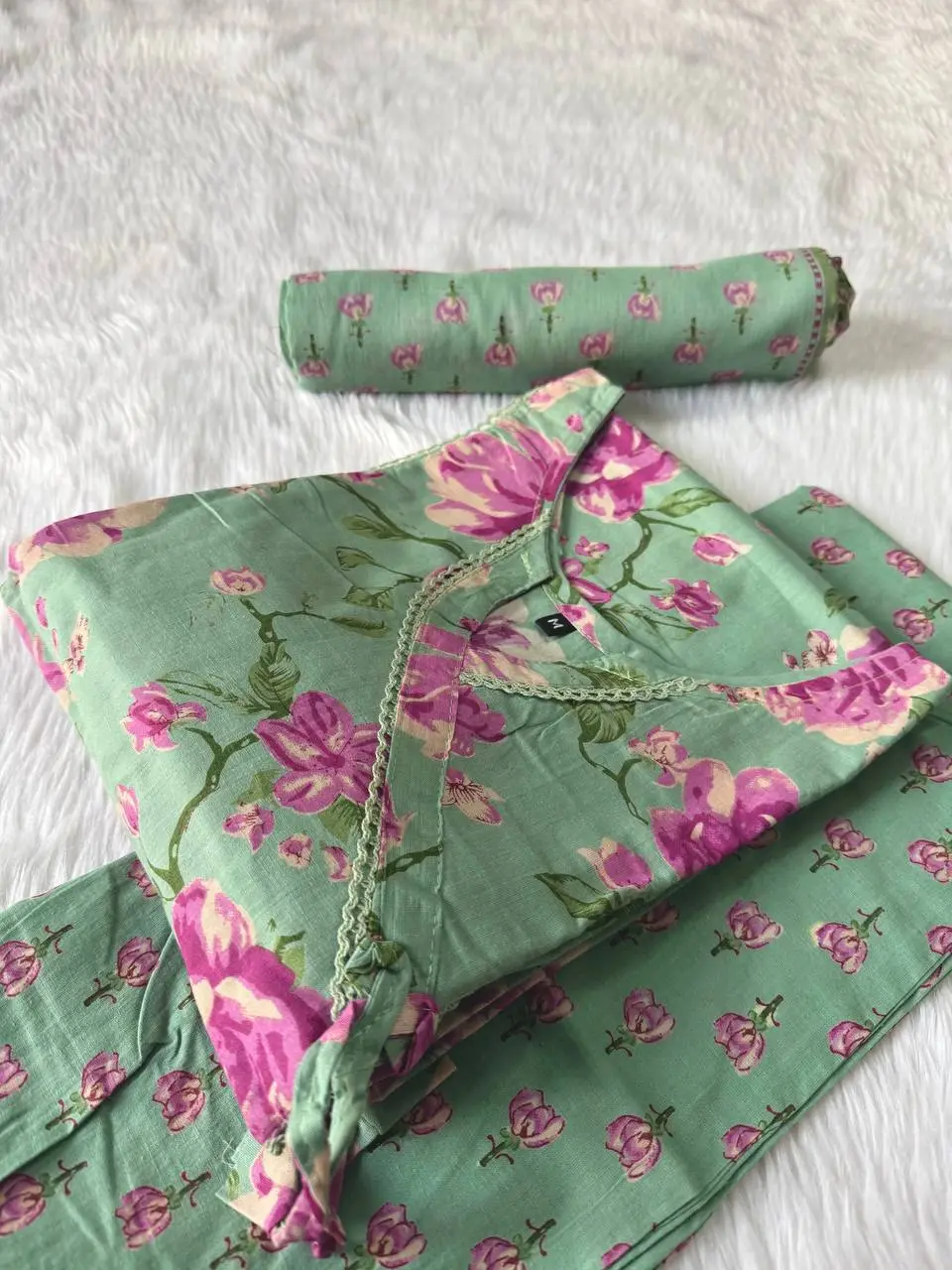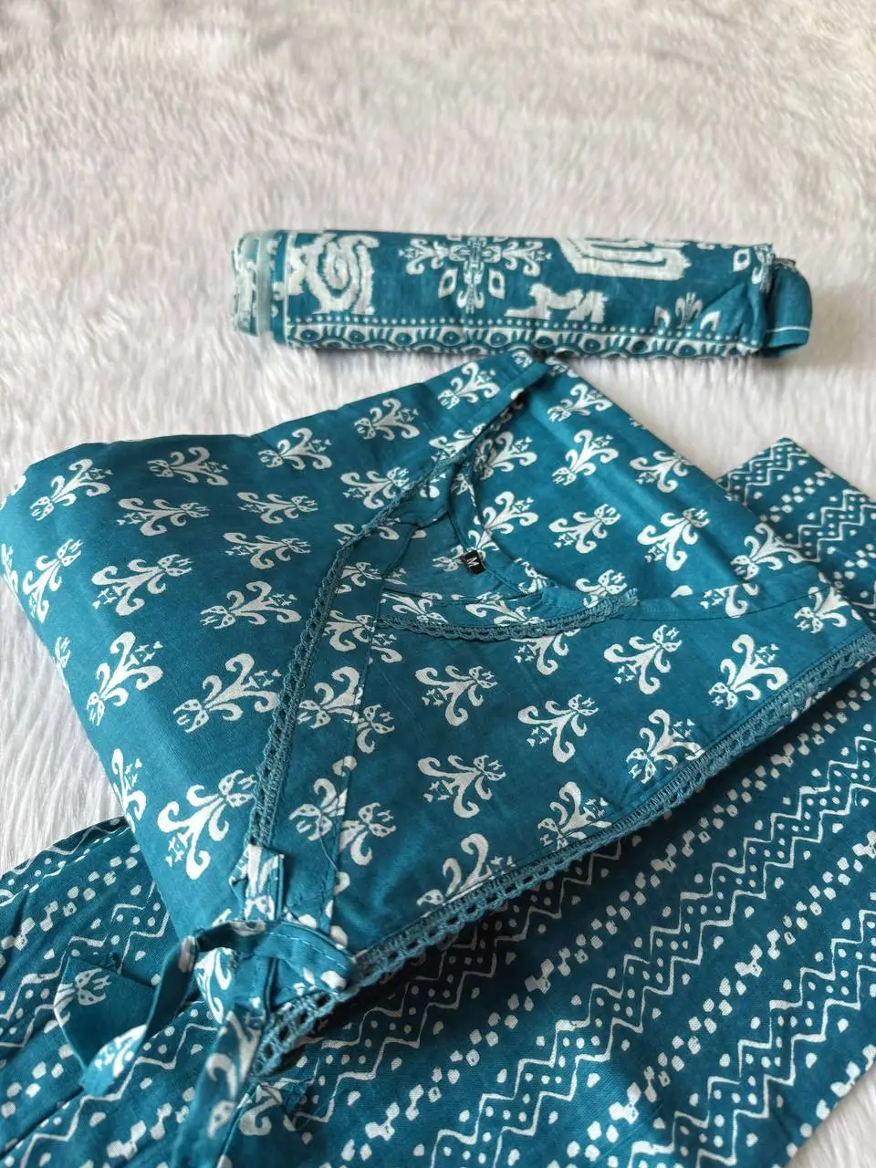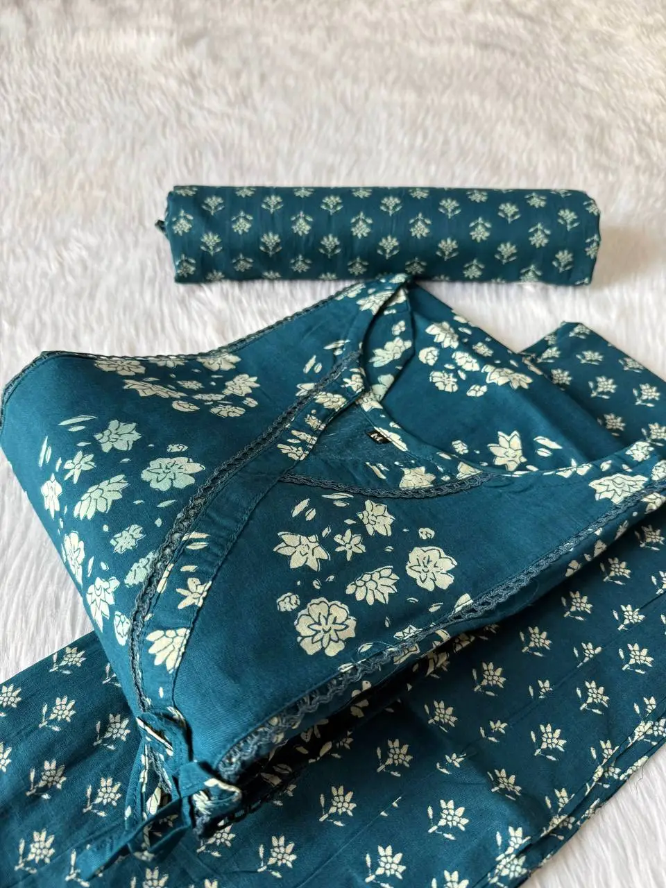 This cotton set is amazing. The fabric is soft, comfortable, and breathable. It fits well, looks great, and stays nice even after washing. I love it